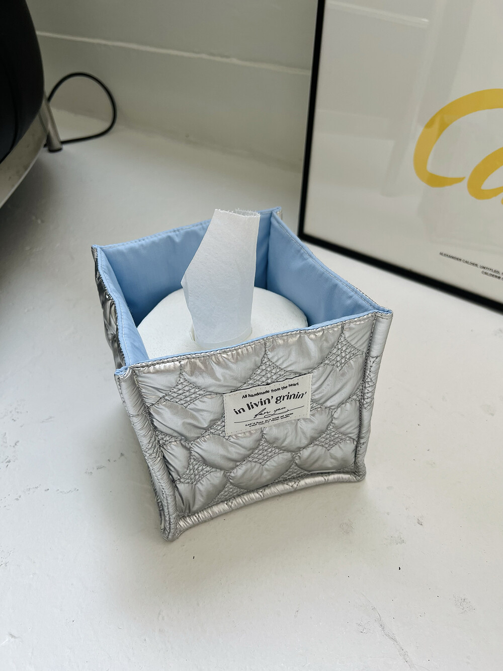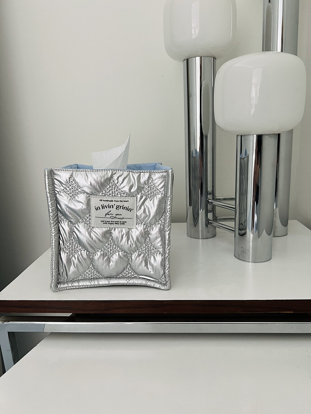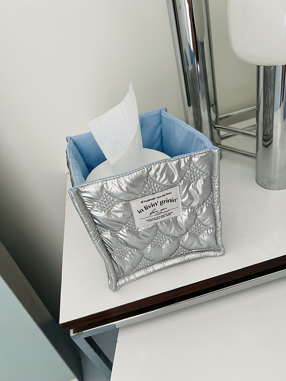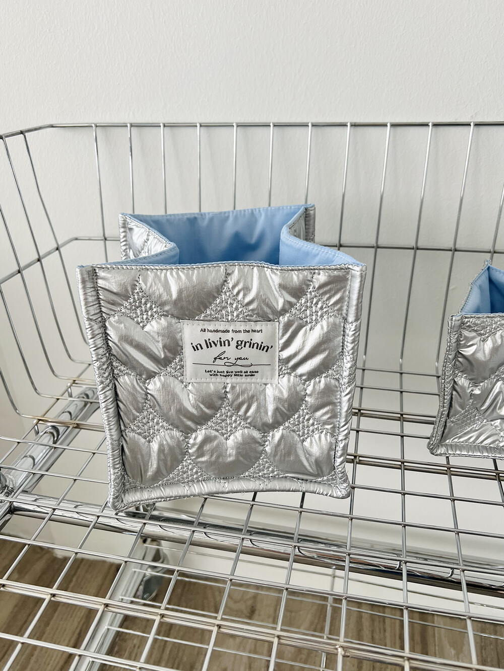 fabric basket square_silver